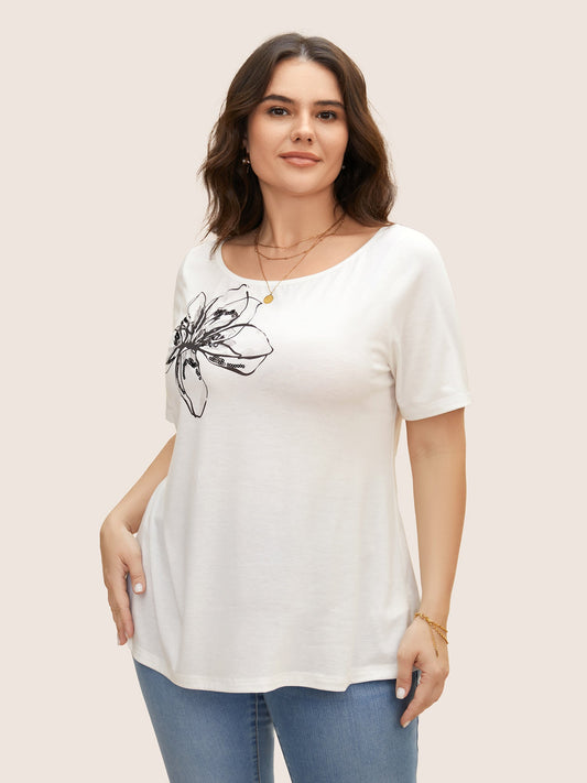 Floral Print Boat Neck Dolman Sleeve T-shirt