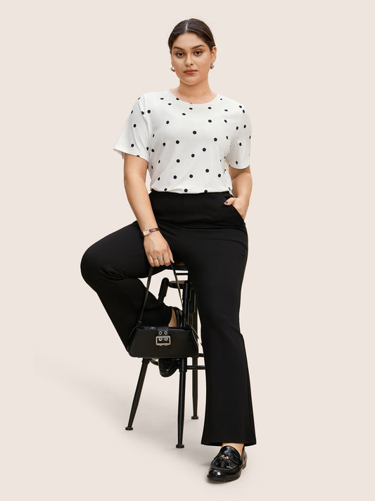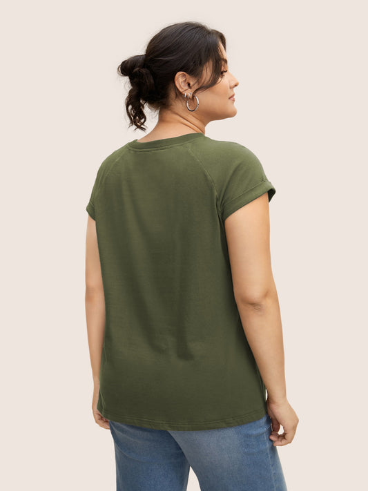Cotton Solid Crew Neck Roll Sleeve T-shirt