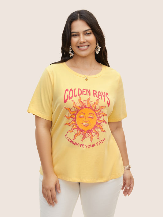 Cotton Round Neck Sun Print T-shirt