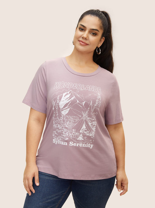 Cotton Landscape Pattern Round Neck T-shirt