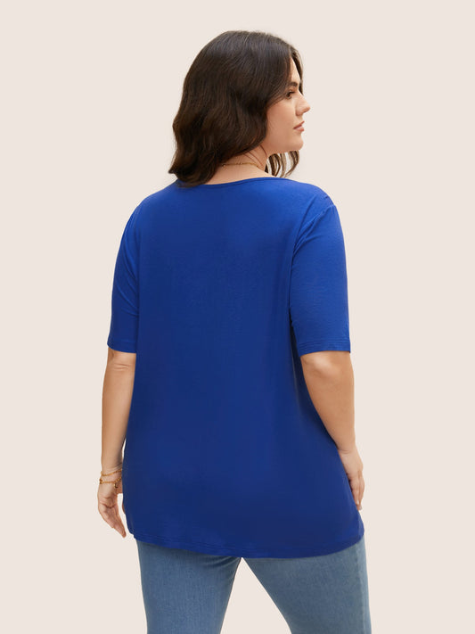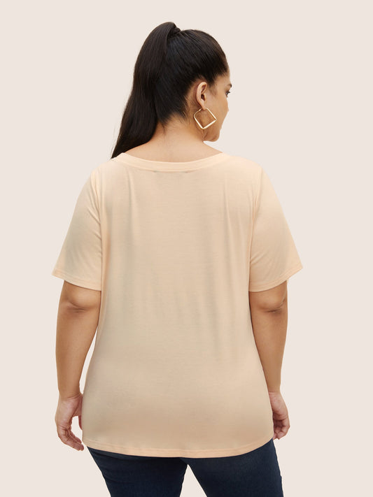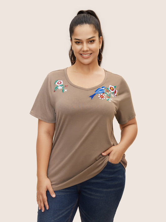 Heart Neckline Natural Floral Embroidered T-shirt