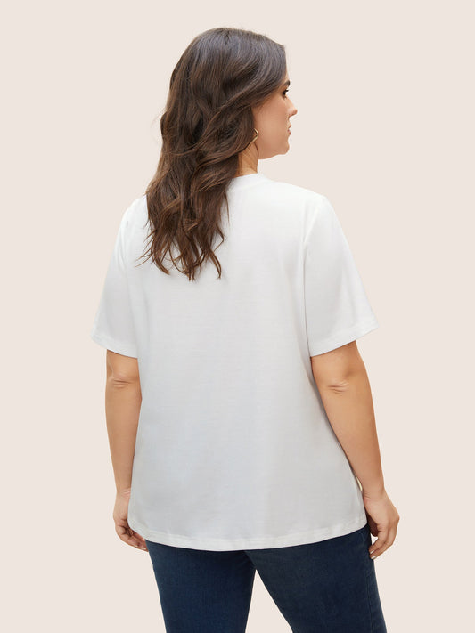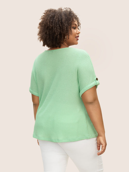 Plain Waffle Knit Button Cuff Sleeve T-shirt