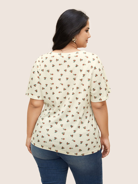 Natural Flowers V Neck Flutter Sleeve T-shirt