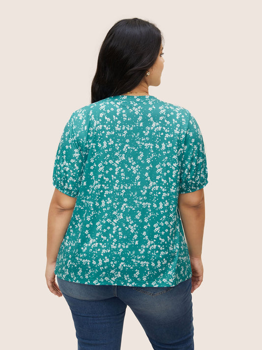 Ditsy Floral Shirred Lantern Sleeve T-shirt
