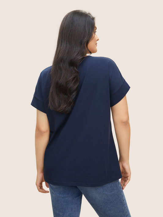 Colorblock Contrast Cuffed Sleeve T-shirt