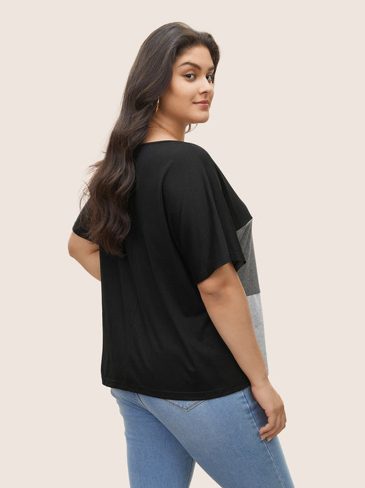 Colorblock Contrast Crew Neck Batwing Sleeve T-shirt