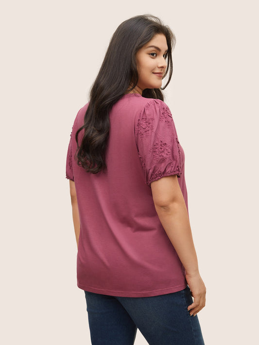 Solid Stereo Flower Design Puff Sleeve T-shirt