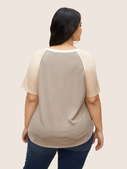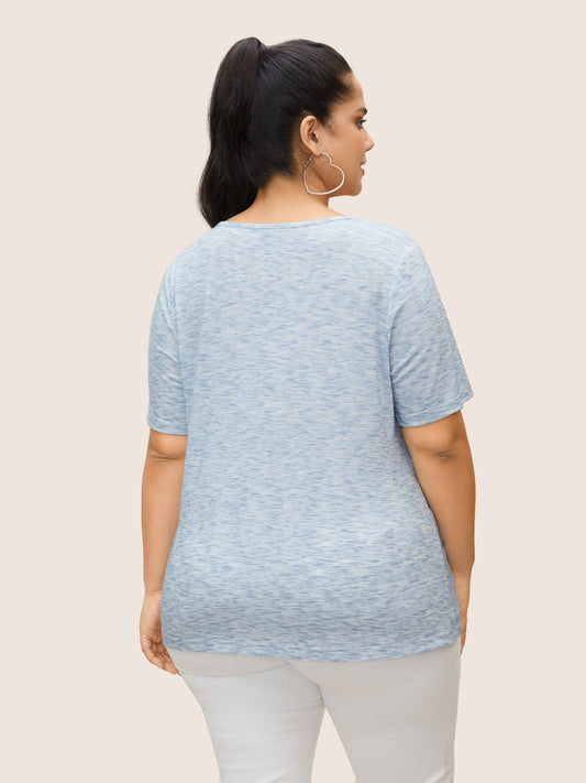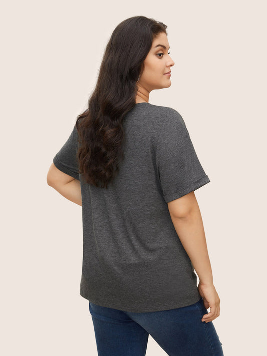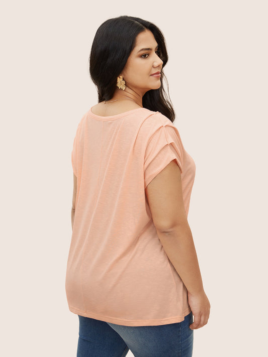 Plain Round Neck Gathered Batwing Sleeve T-shirt