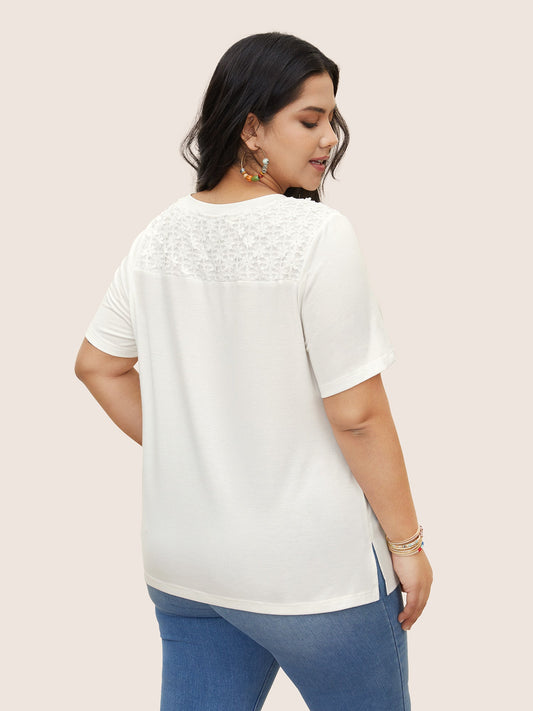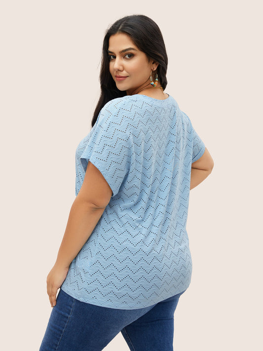 Plain Jacquard Pointelle Knit Batwing Sleeve T-shirt