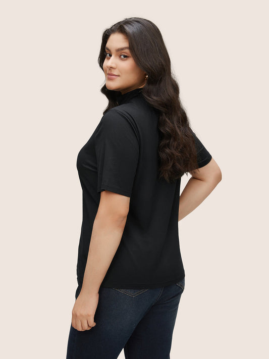 Elastic Cuffs Asymmetrical Neck Button Detail T-shirt