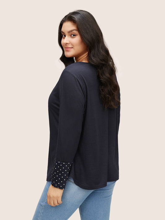 Polka Dot Patchwork Notched Button Detail T-shirt
