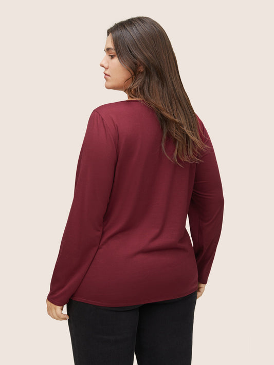 Colorblock Patchwork Batwing Sleeve Notched T-shirt