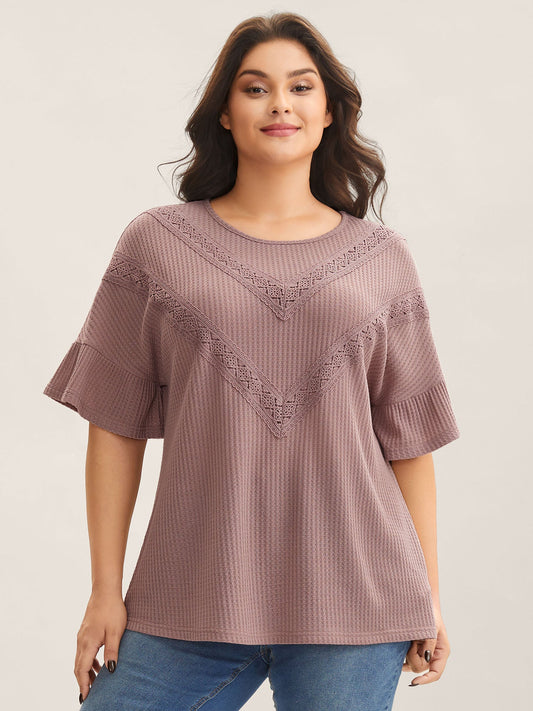 Textured Stretchy Sheer Crew Neck T-Shirt