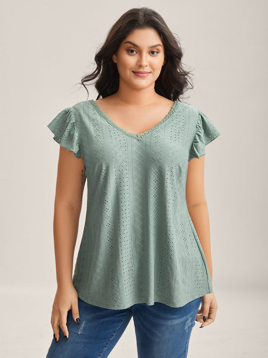 Eyelet Trim Flutter Sleeve Backless T-Shirt