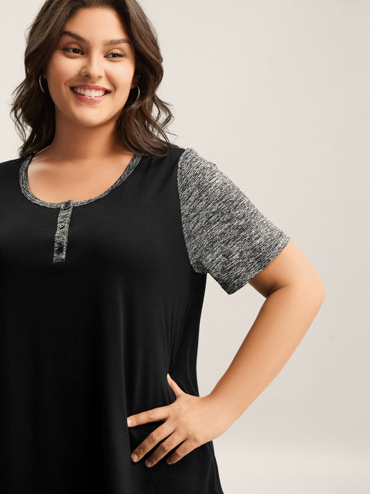 Color Contrast Textured Raglan Sleeve T-Shirt