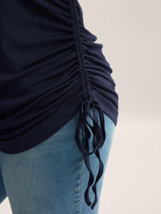 Textured Pit Strip Layered Sleeve Sheer T-Shirt