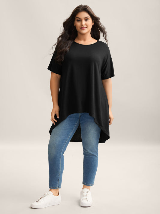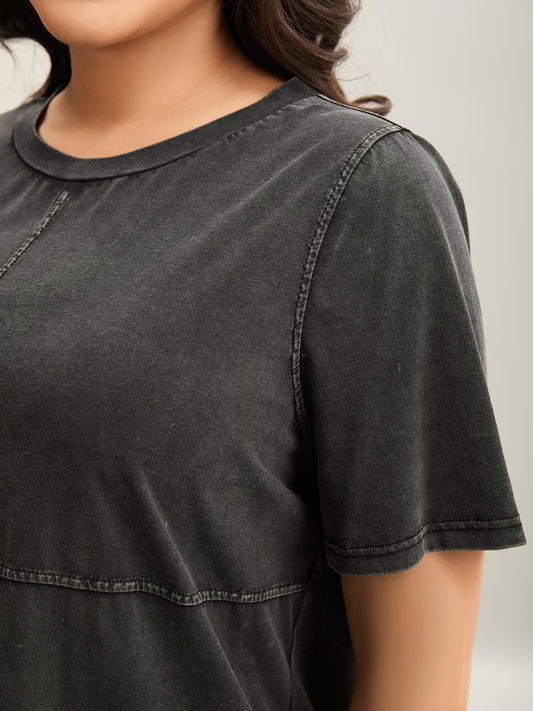 Layered Lotus Leaf Sleeve Plain T-Shirt