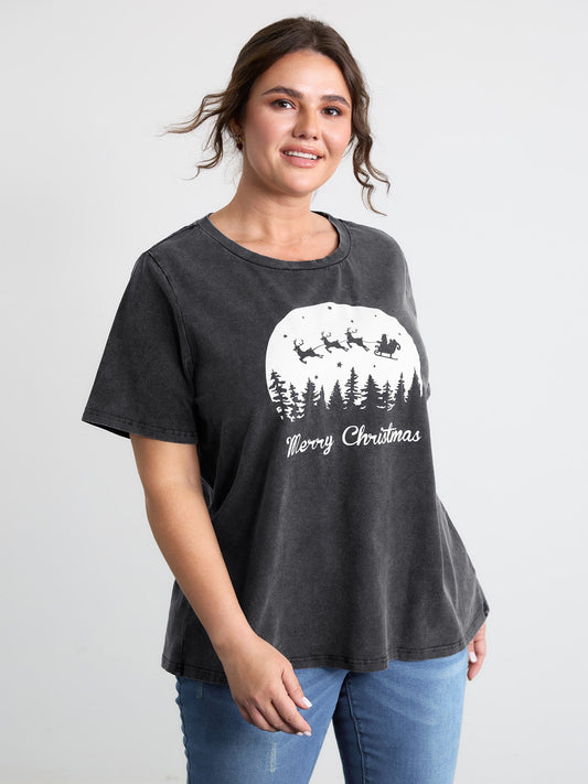 Vintage Cozy Merry Christmas Round Neck T-Shirt