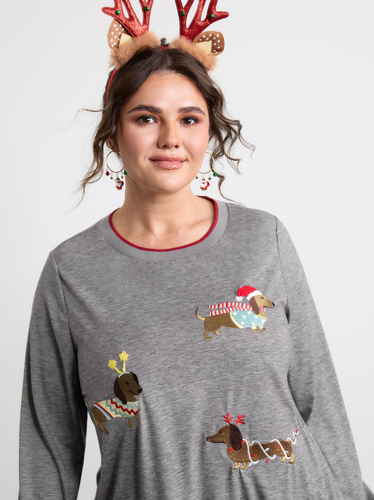 Supersoft Puppy Embroidery Contrast T-Shirt