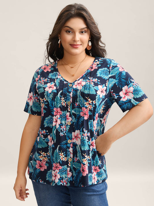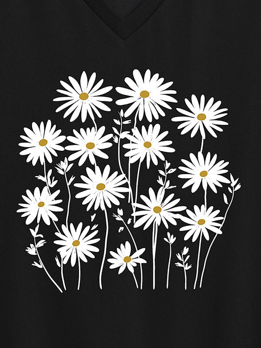 Floral Pattern V-Neck T-Shirt