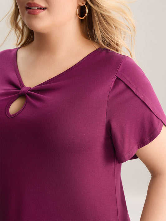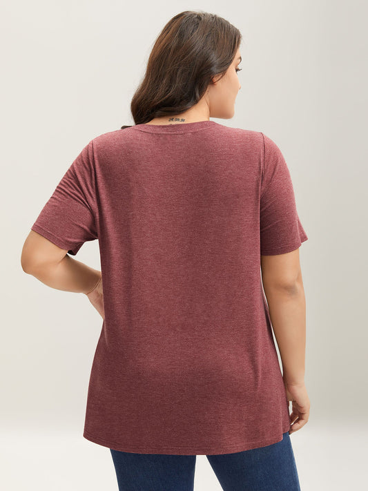 Heather Stretchy Overlap Hem Plain T-Shirt