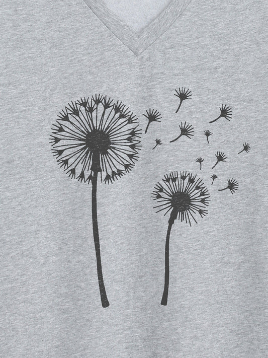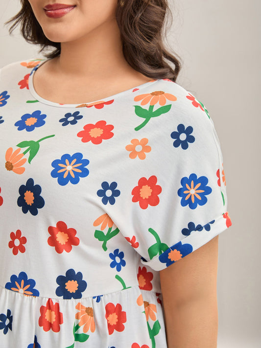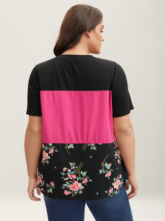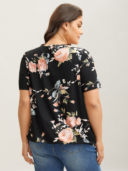 Stretchy Larger Flower Print Neck Tie T-Shirt