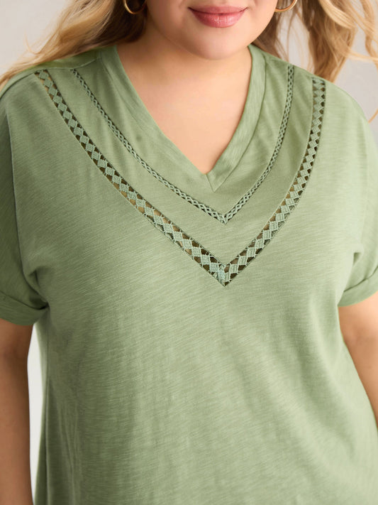 Bamboo Fabric Lace Trim Flowy T-Shirt