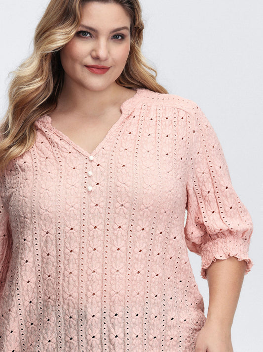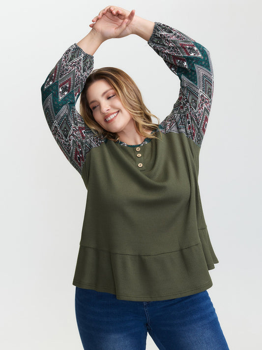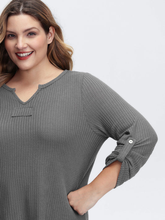 Notched Neck Tab Sleeve Waffle T-Shirt