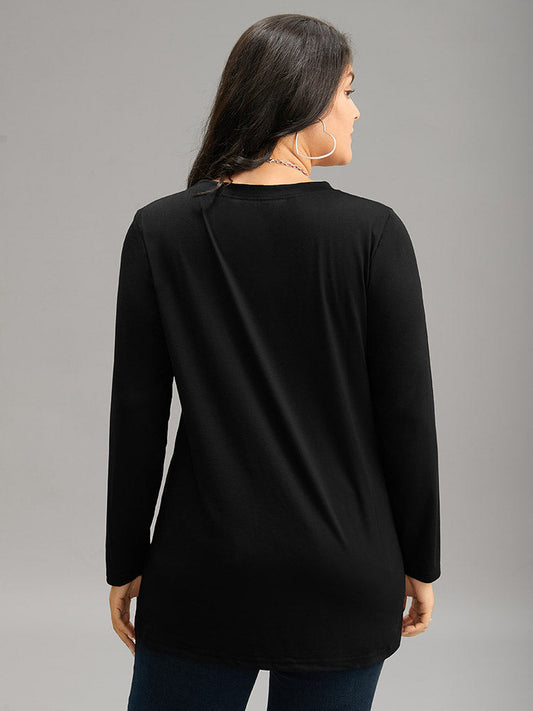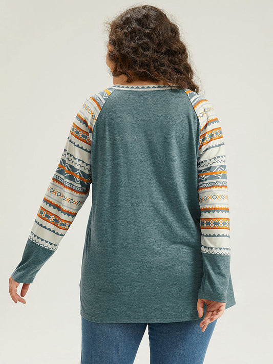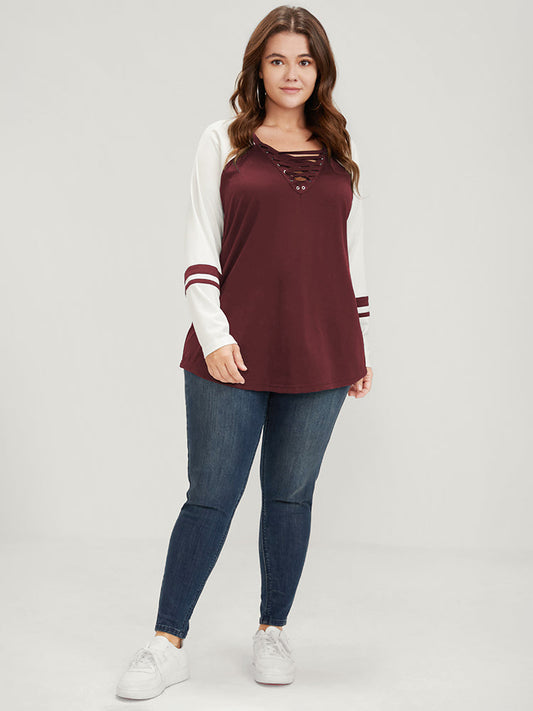 Colorblock Contrast Raglan Sleeve Lace Up Long Tee