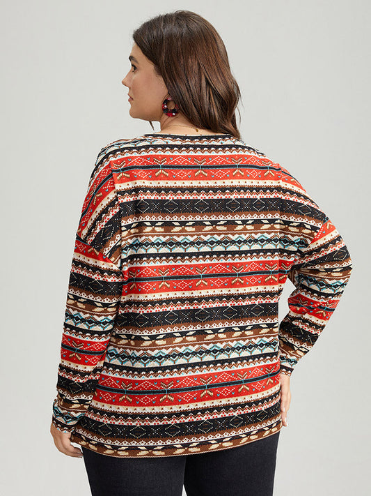Boho Print Mock Neck T-shirt