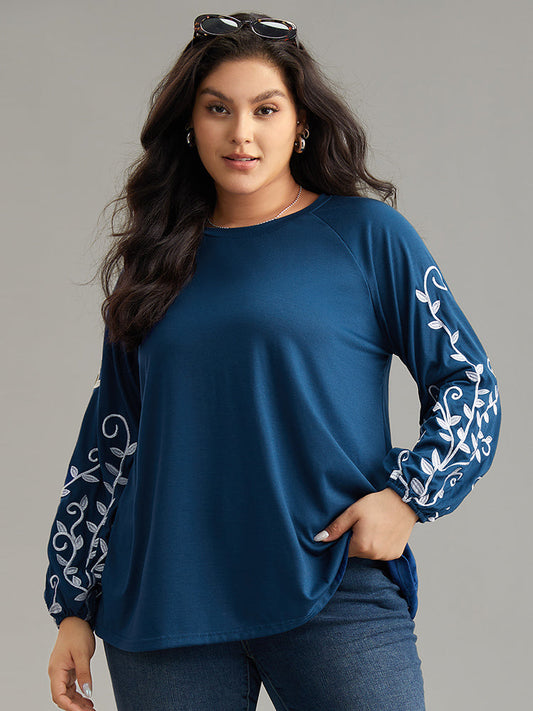 Floral Embroidered Contrast Raglan Sleeve T-shirt