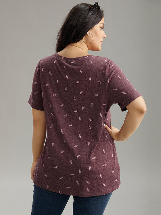 Feather Print V Neck T-shirt
