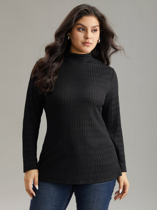 Plain Texture Mock Neck T-shirt