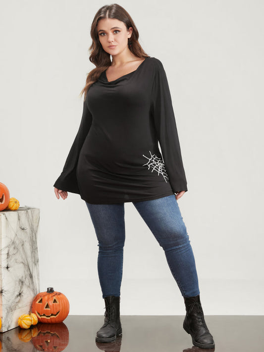 Halloween Spider Web Print Long Tee