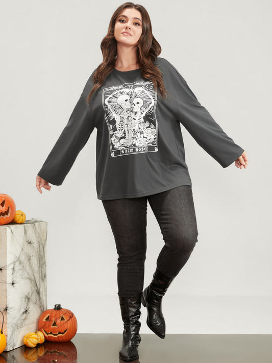 Halloween Skull Print Long Tee
