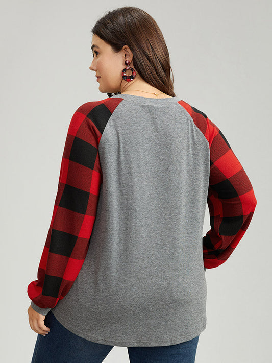 Plaid Christmas Trees Round Neck T-shirt
