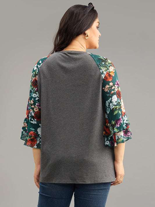 Floral Patchwork Flutters Raglan Sleeve T-shirt