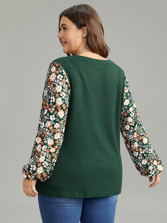 Waffle Knit Patchwork Ditsy Floral T-shirt