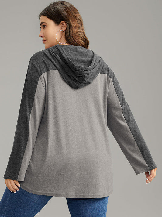 Patchwork Contrast Pocket Hooded Drawstring T-shirt