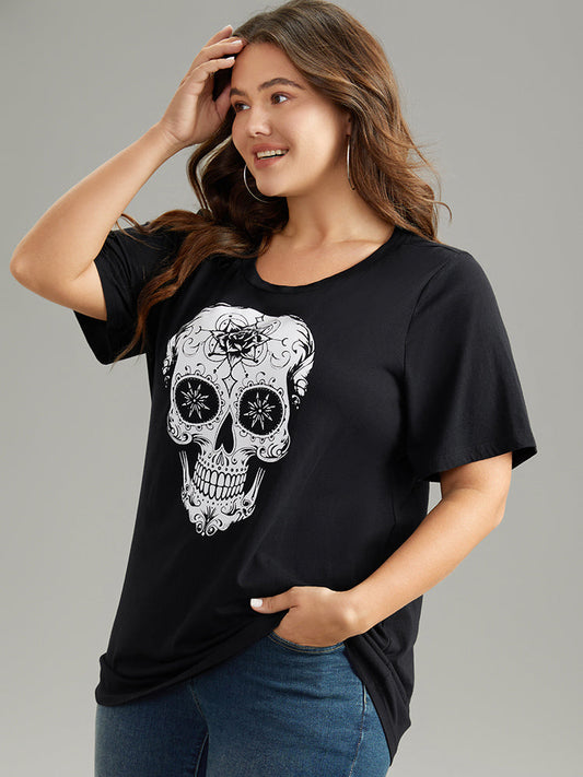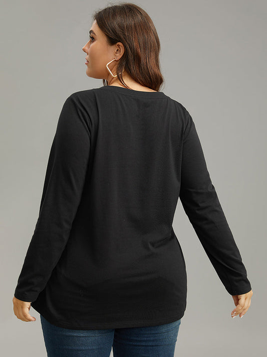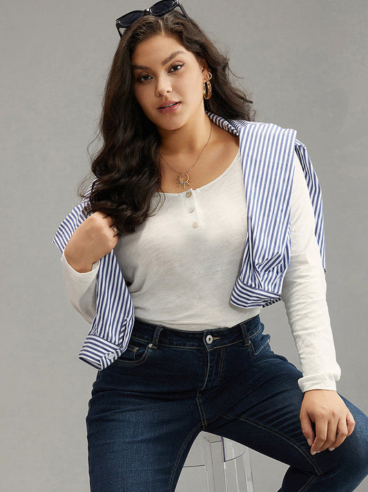 Striped Contrast Button Up Tab Sleeve T-shirt