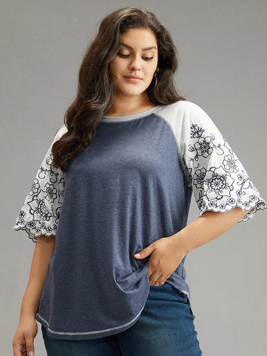 Ditsy Floral Colorblock Contrast Raglan Sleeve T-shirt