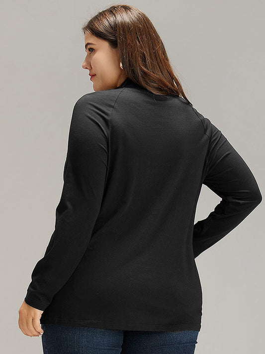 Cotton Mock Neck Raglan Sleeve T-shirt