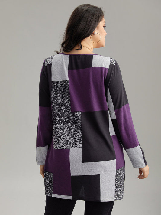 Two Tone Patchwork Heather Arc Hem T-shirt