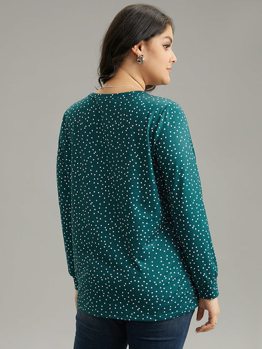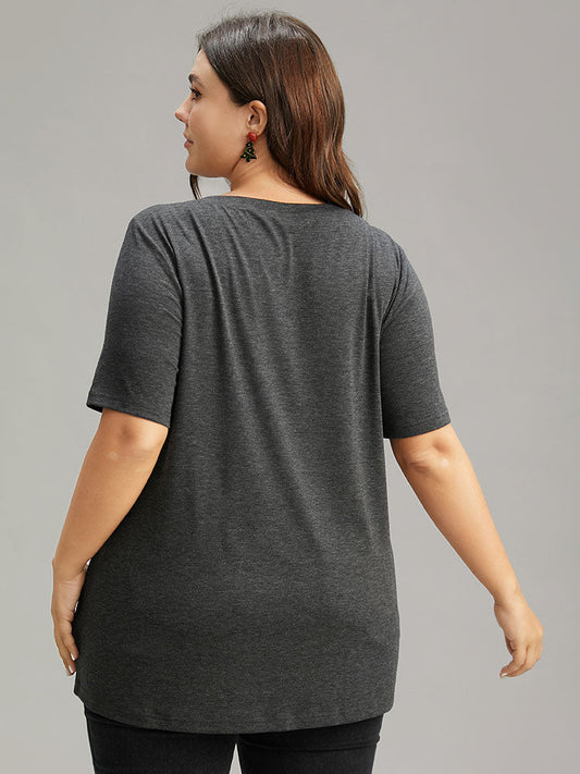 Christmas Trees Print Cuffed Sleeve T-shirt