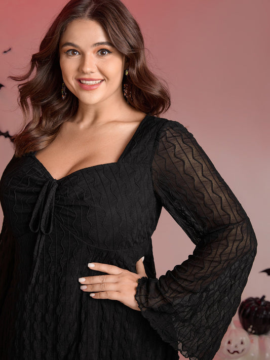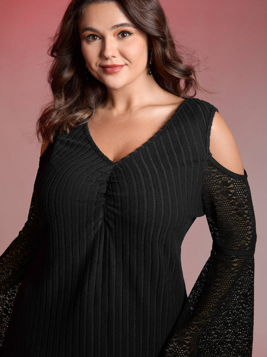 Cinched Bodice Cut-Out Shoulder Sheer Top