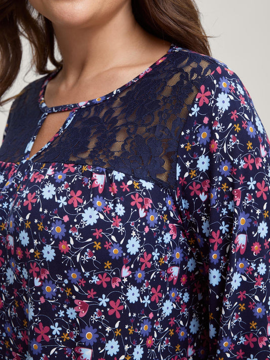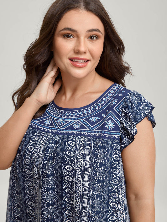 Supersoft Floral Ruffled Sleeve Neck Tie Knit Top