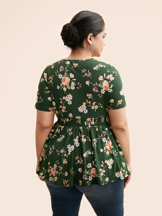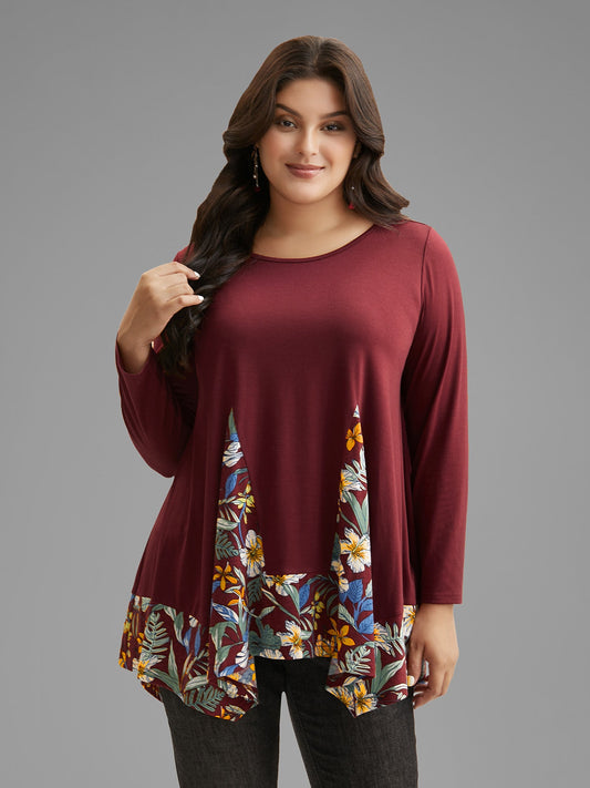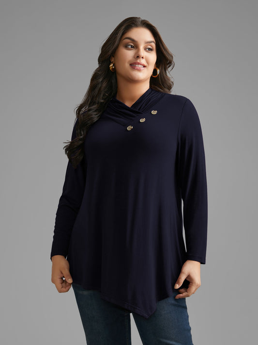 Solid Button Detail Asymmetrical Hem Jersey Top