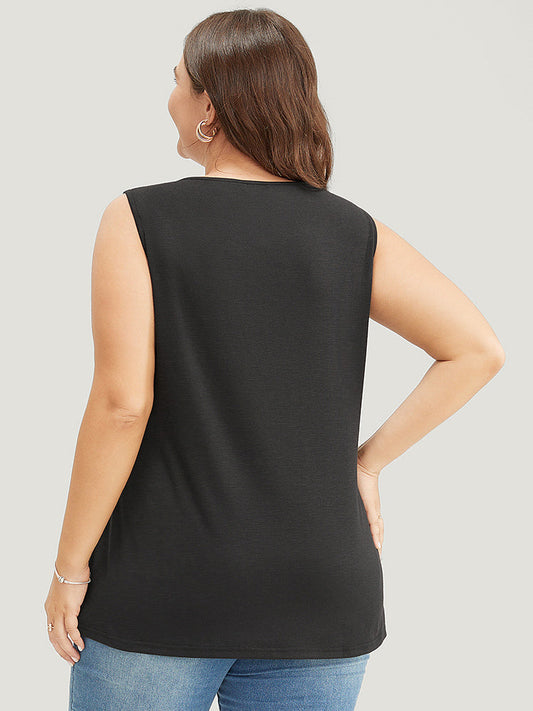 Solid Button Detail Ruffle High Low Hem Tank Top
