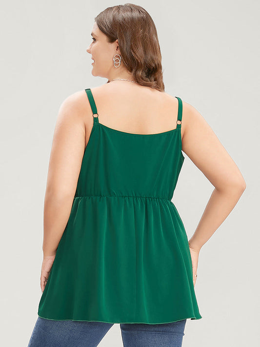 Solid Wrap Asymmetrical Hem Ruffle Trim Cami Top