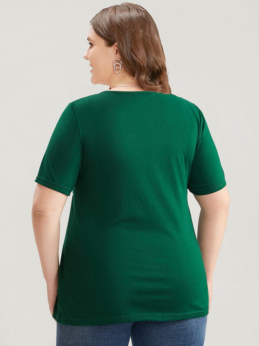 Solid Drawstring Front Ruched Ruffles Hem T-shirt